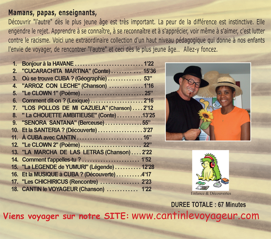 C’est un grand voyage au cœur de la tradition orale de CUBA que te propose Cantin le Voyageur. Et il sera là pour te guider.